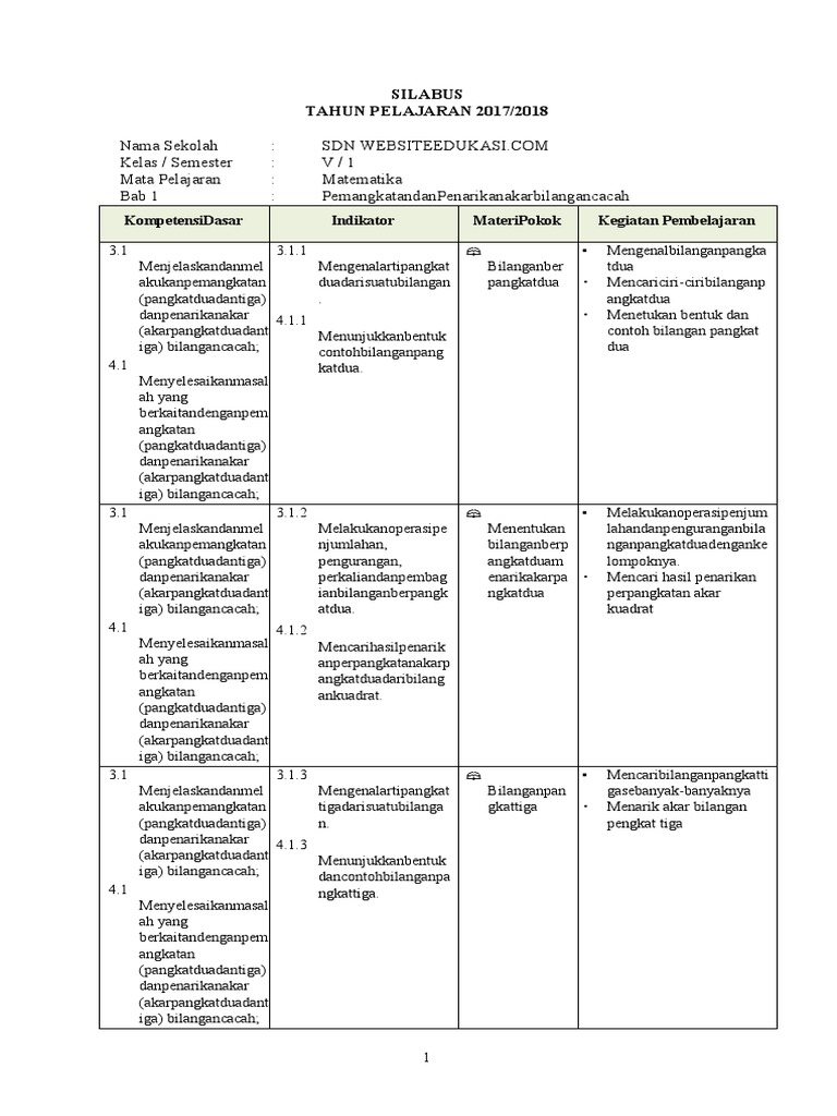 Silabus matematika kelas 4 k13 tahun 20202021 download silabus matematika kelas iv sdmi semester 1 dan 2 kurikulum 2013 revisi terbaru. 33 full pdfs related to this paper. Biasanya terdiri dari isi dan bahan ajar yang lama penerapannya tidak ditentukan. Silabus matematika kelas 5 sem 1 k13 revisi. Perangkat pelajaran kelas 4 k13 lengkap.