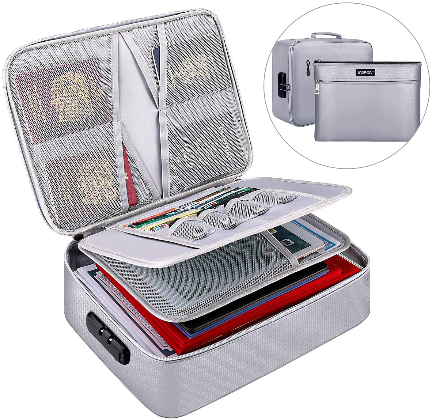 It's large enough to store legal size papers, comes with an excellent tsa lock (far better than many competitors) and can withstand flames up to 2192°f.